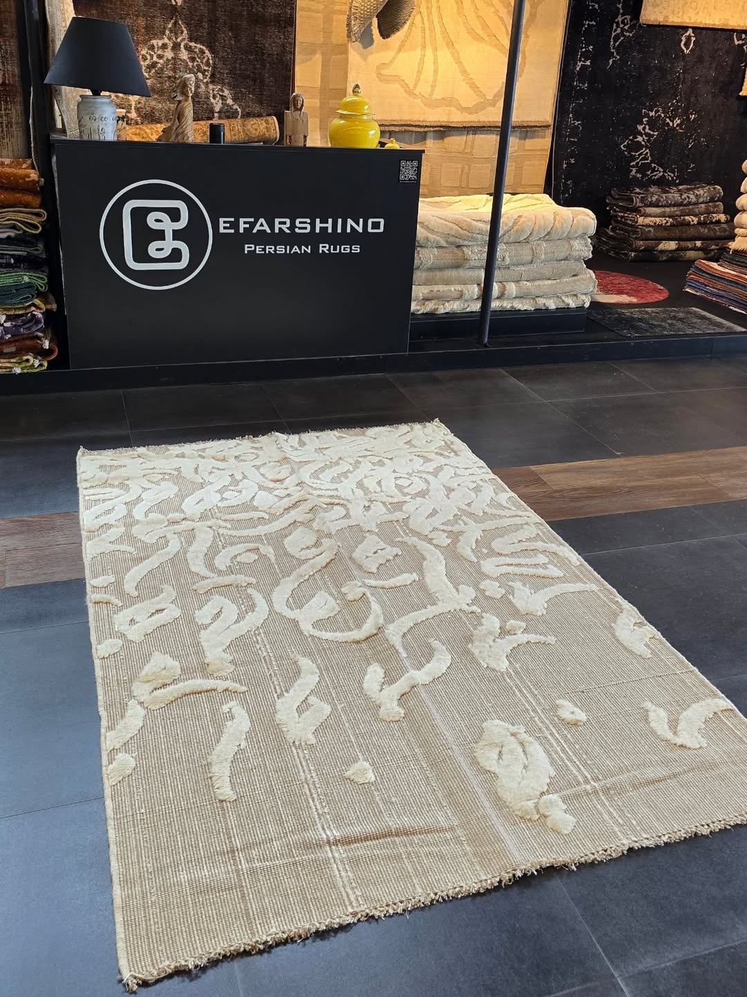 فرش کالیگرافی کرم و سفید