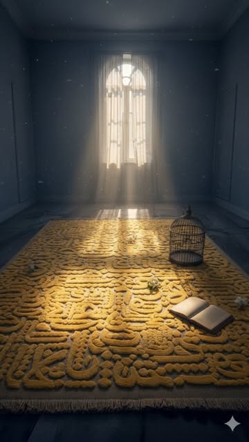 گلیم فرش کالیگرافی طرح سیاه قلم رنگ زردناموجود