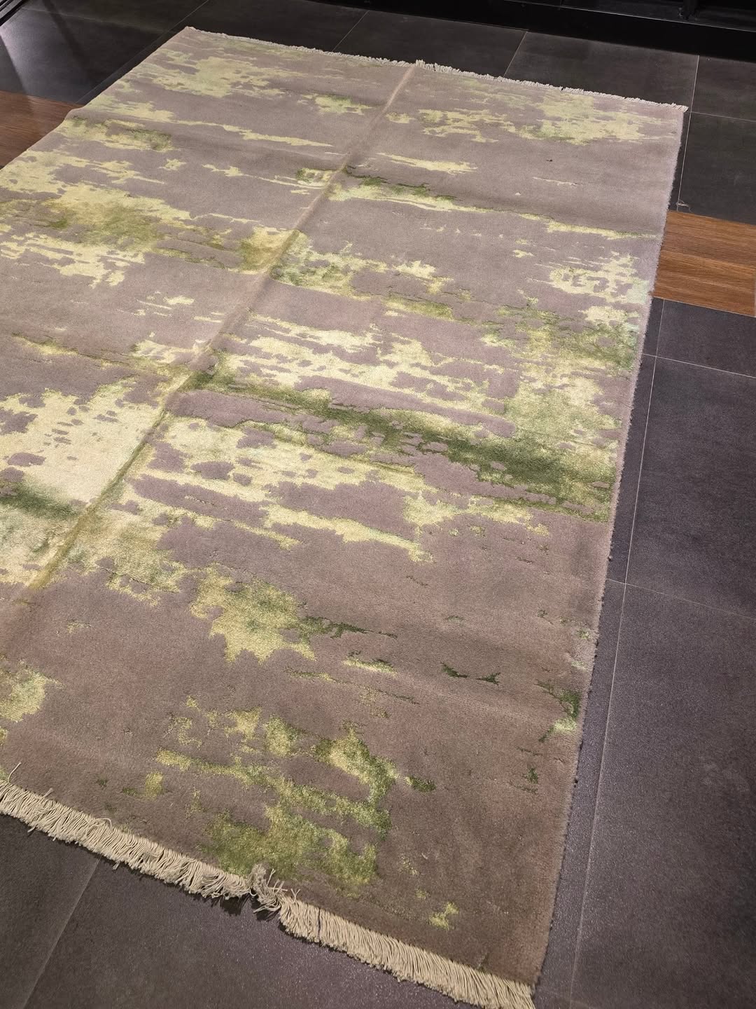 فرش مدرن بافت خاکستری با ابریشم سبز