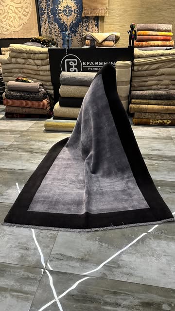 فرش مدرن بافت مشکی و خاکستری طرح نیم رخ سایز 9متر