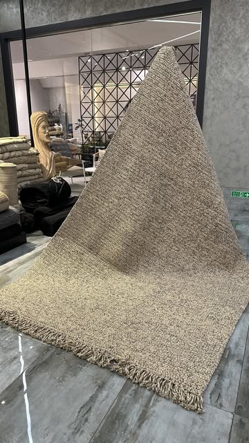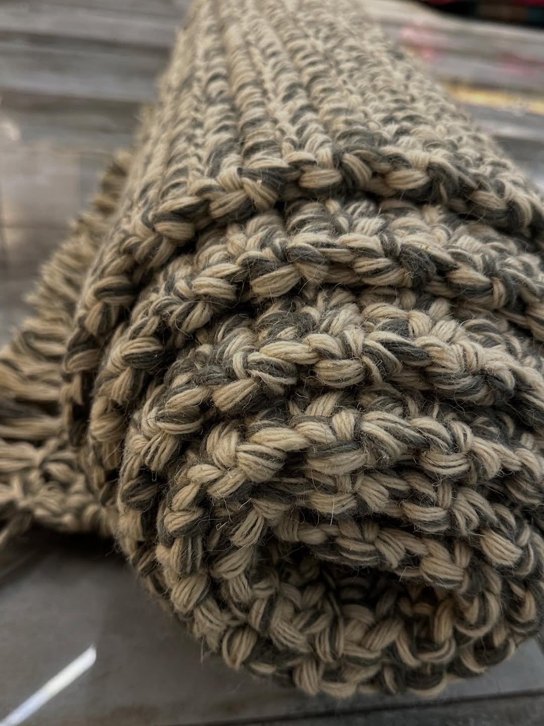 گلیم درشت بافت کرم و فیلی ۶ متر