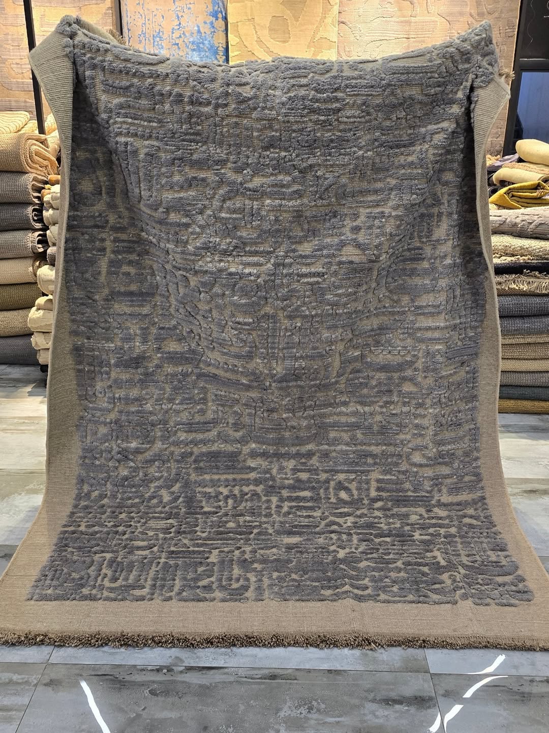 گلیم فرش کالیگرافی خاکستری بژ سه متری